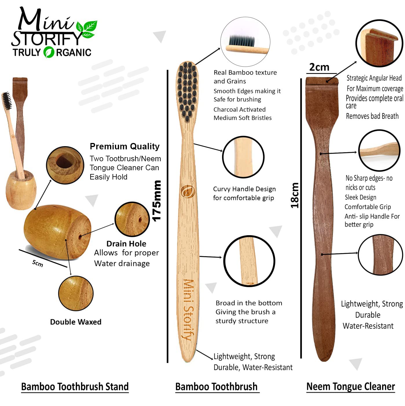 Mini Storify Truly Organic 2.Bamboo Cotton Ear bud1.kid Bamboo toothbrush 1.Bamboo Toothbrush Stand,1.Pure Neem Tongue Cleaner2 Oval Loofah