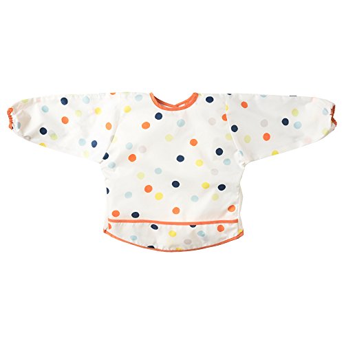 Length: 15 " Width: 13 " Length: 37 cm Width: 34 cm. A soft bib that your child can wear comfortably for many years thanks to the adjustable neck practical hook-and-loop fastening and long sleeves with elastic. The front pocket catches all spills and is easy to clean either with a quick rinse or by washing it in the machine. Keeps messes and moisture from the child's clothes since it's made of polyester with synthetic rubber.
