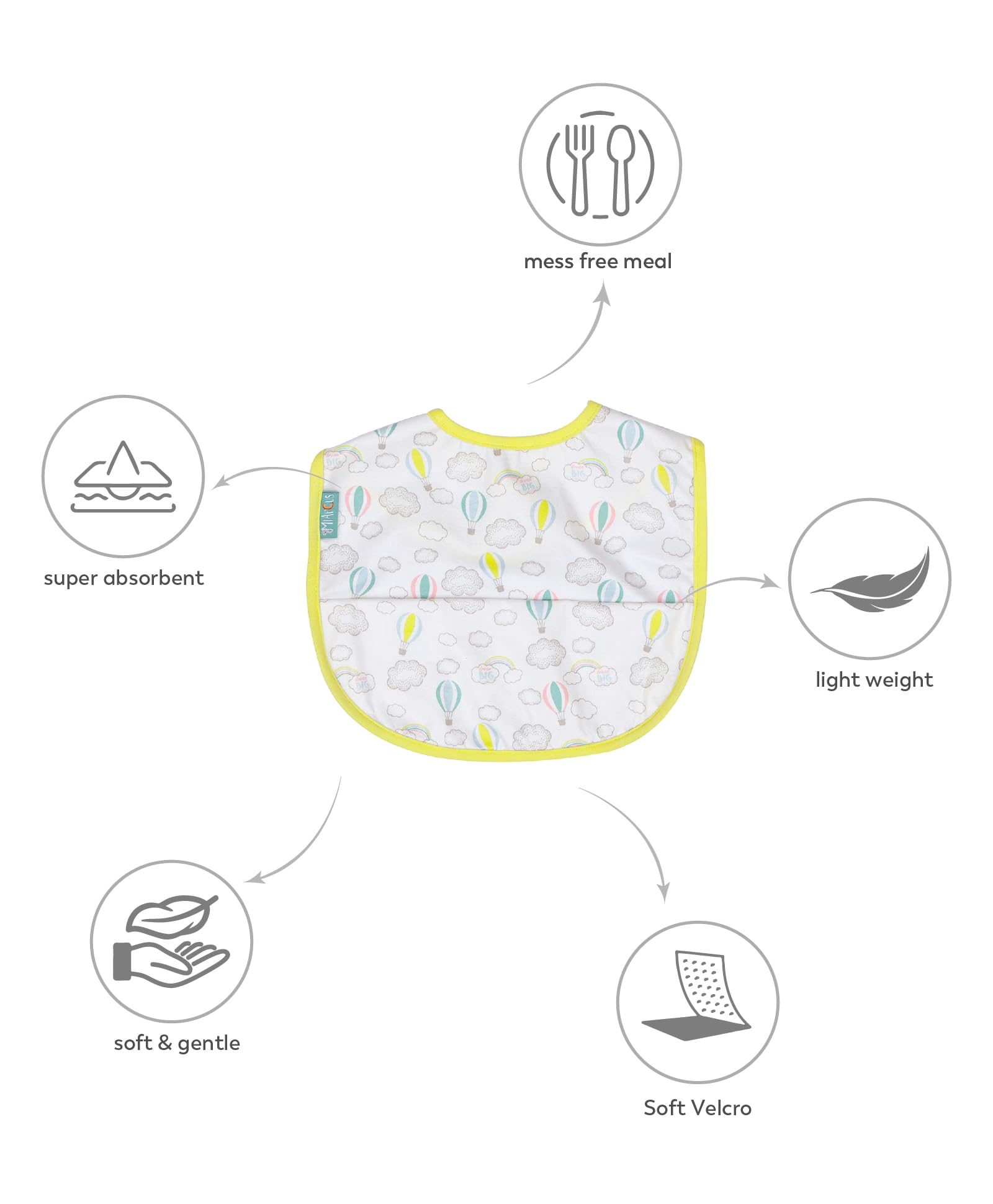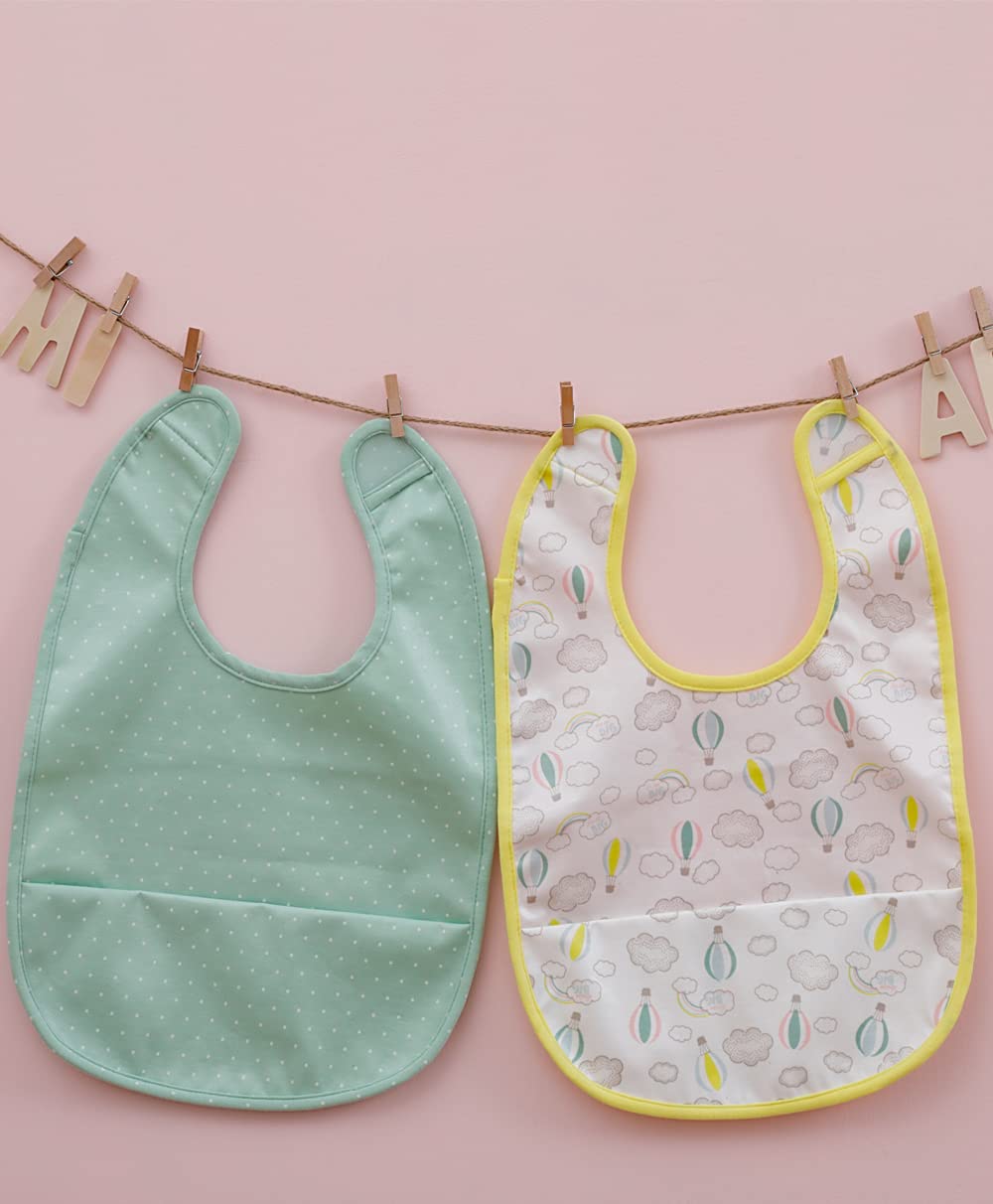 A pack of 2 the cute bibs with enchanting prints are perfect to protect your little bub from messy spills during feeding time