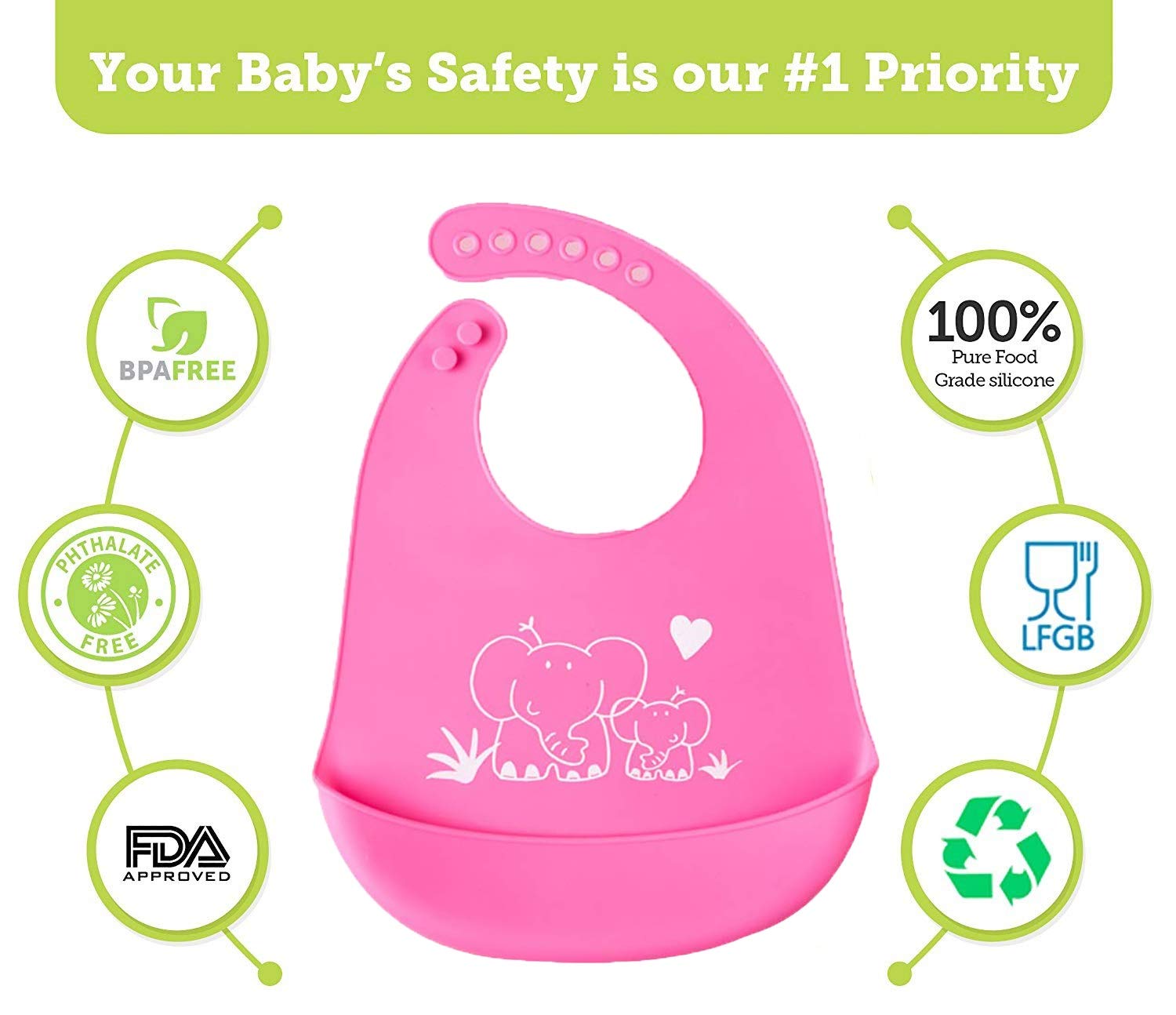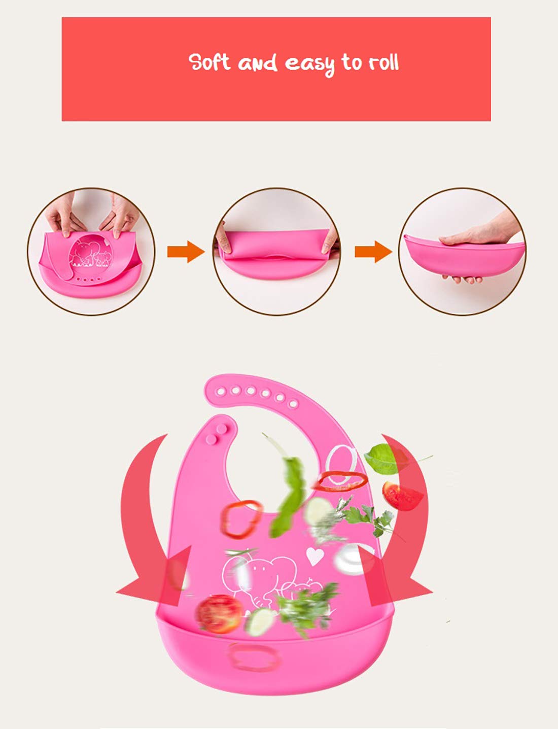 SYGA Baby Cute Cartoon Printing Waterproof Silicone Bib Rice Pocket