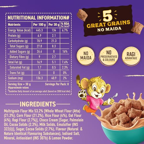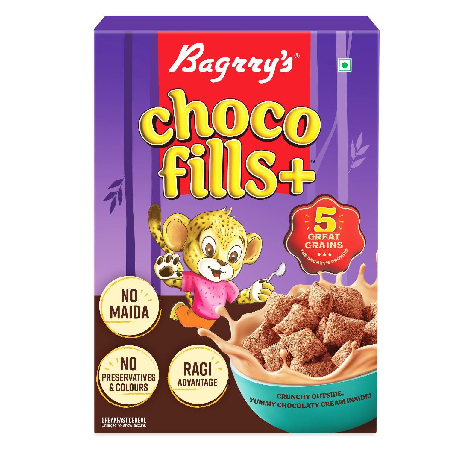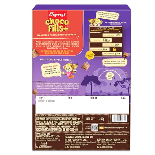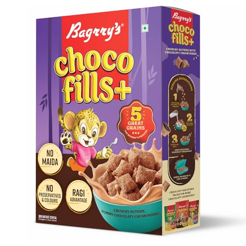 Bagrrys Choco Fills Plus | 5 Grain Goodness | Ragi Advantage | Source of Fibre | Kids Cereal | Choco Fills, 250 g Box