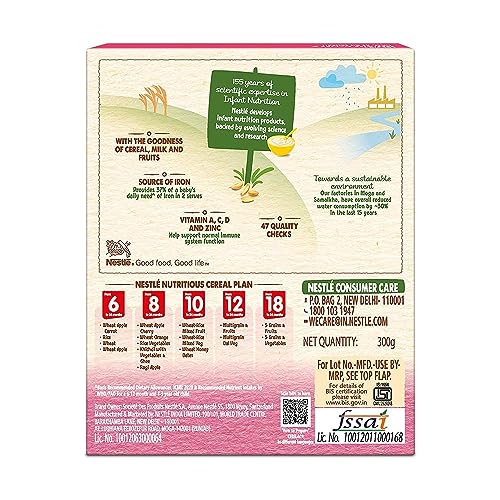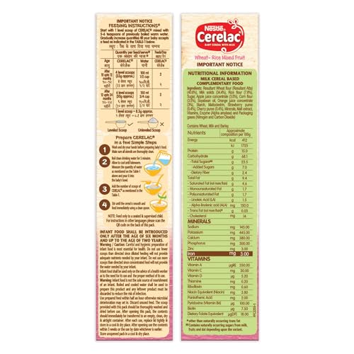 HomeBabyFeedingCereal & PorridgeCERELAC Baby Cereal with Milk Wheat - Rice Mixed Fruit From 10 to 24 Months Stage 3 Source of Iron & ProteinBag-In-Box Pack 300g (Pack of 5)