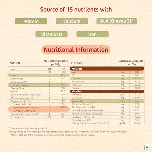 • WITH 15 NUTRIENTS: Including Iron Protein Calcium ALA (Omega 3) & Vitamin D