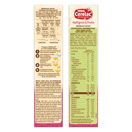 HomeBabyFeedingCereal & PorridgeCERELAC Nestle Baby Cereal with Milk Multigrain & Fruits From 12 to 24 MonthsStage 4 Source of Iron & Protein 300g (Pack of 2)