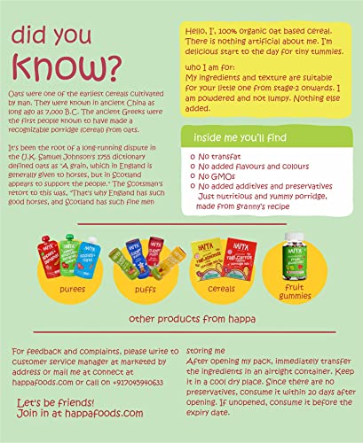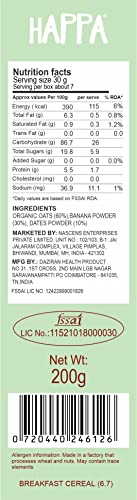 HAPPA Organic Baby Food Oatmeal & Banana Porridge Mix Cereal|Vitamin Mineral Powerhouse|Instant Health Food|100% Natural And Organic Healthy Khichdi|No Added Salt, Sugar Or Milk|No Preservatives|200Gm