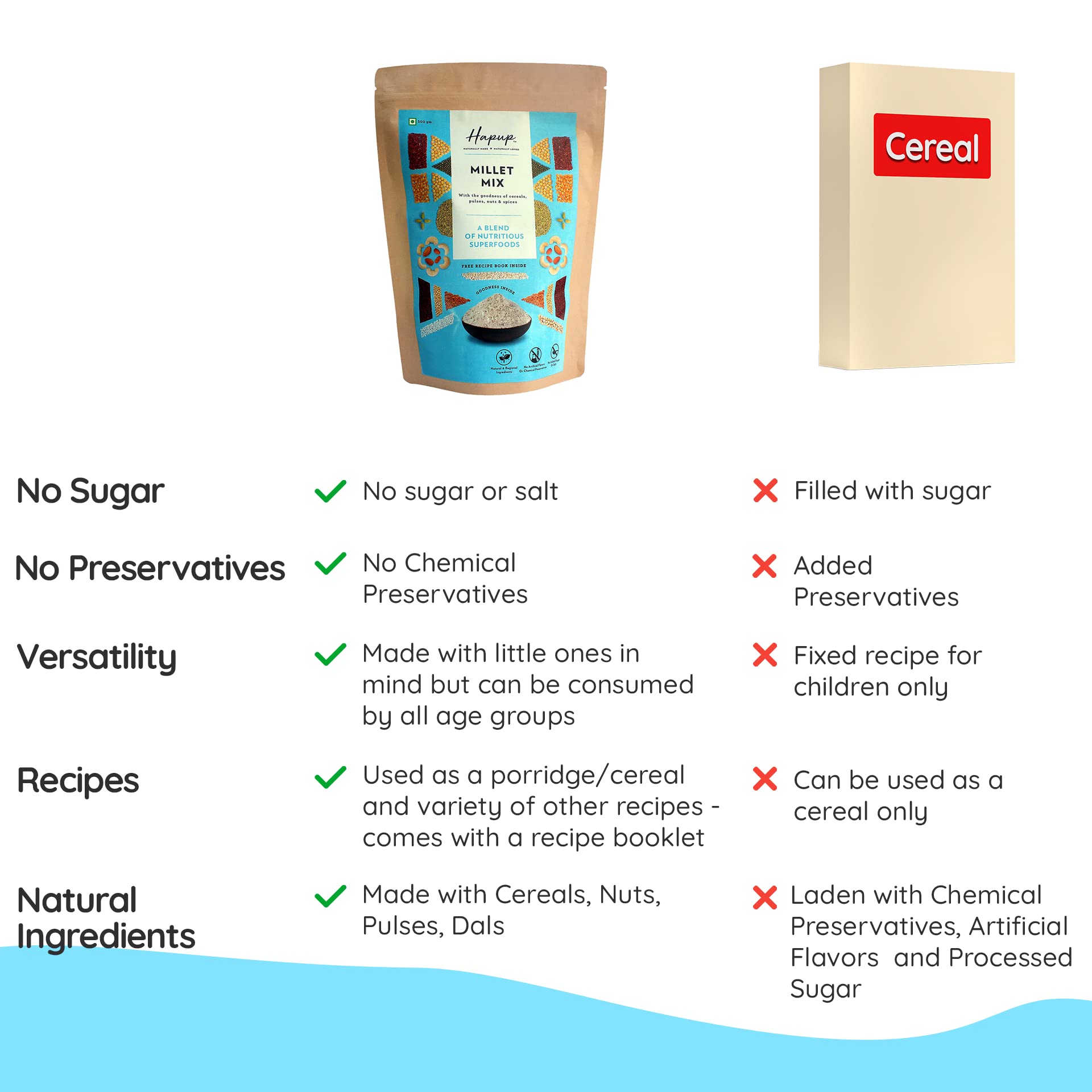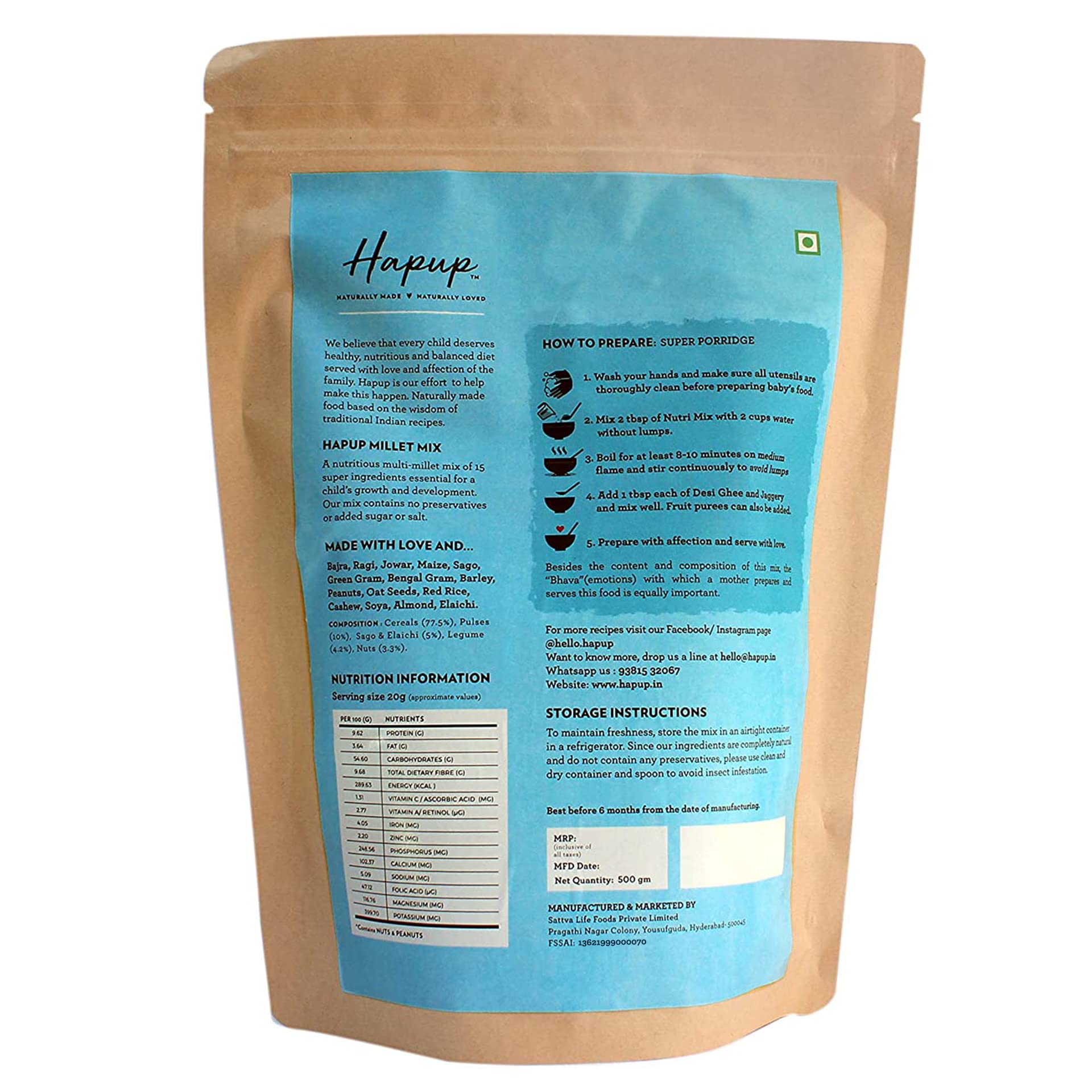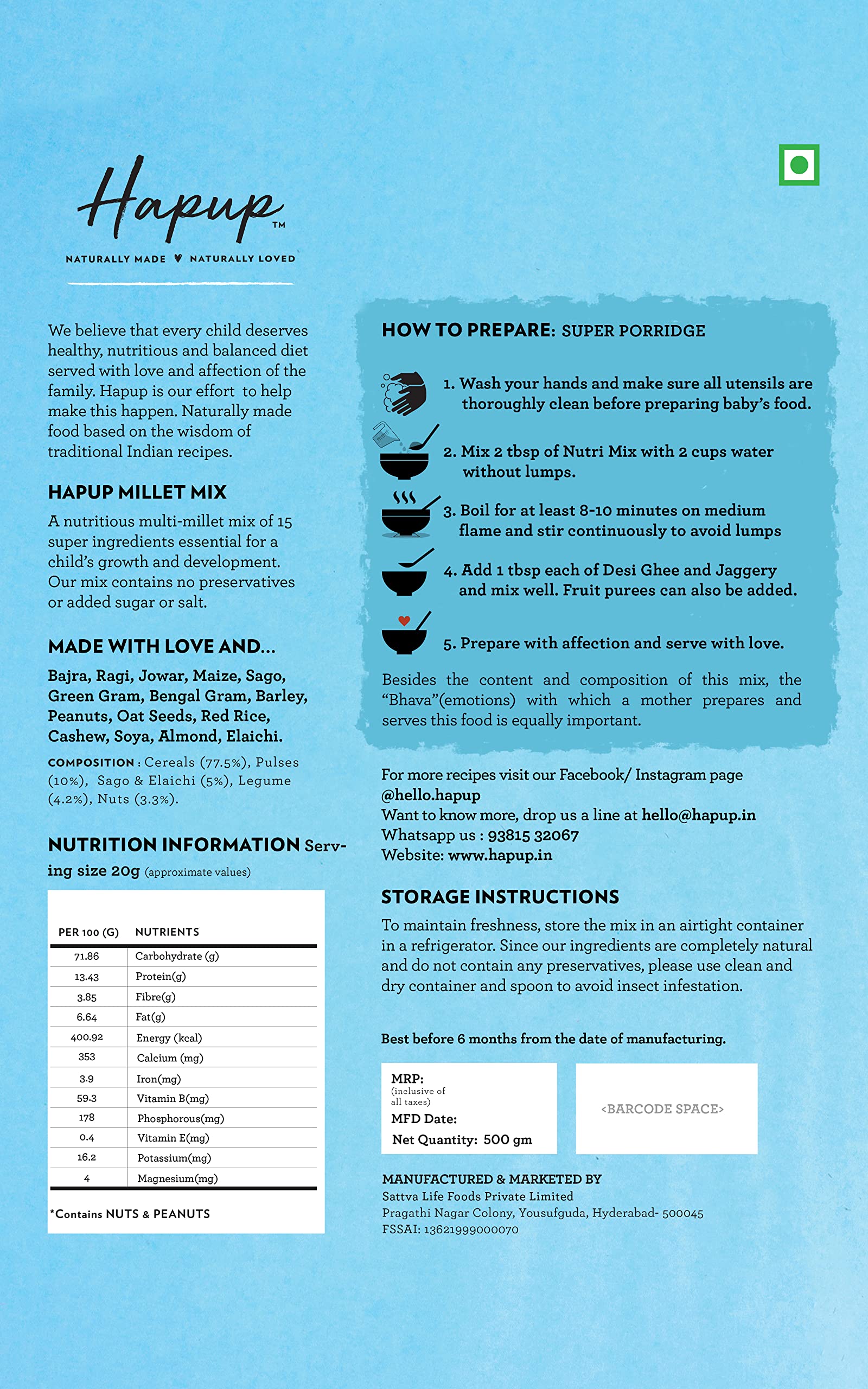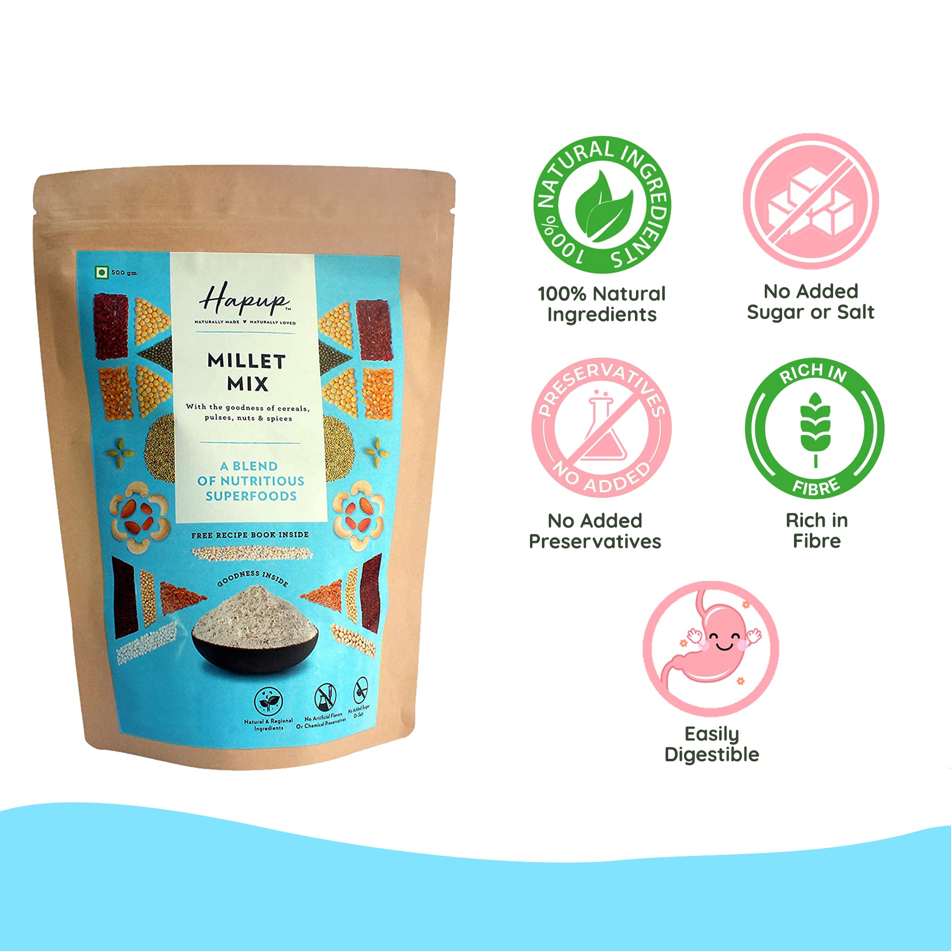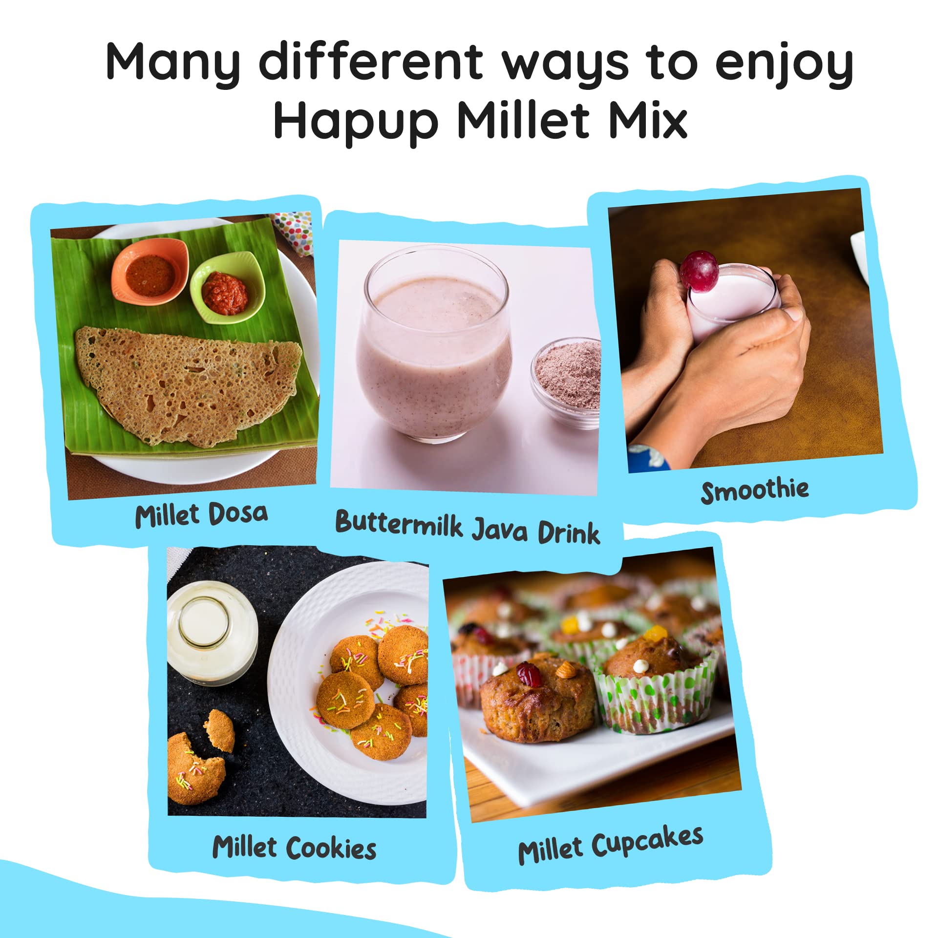 Hapup is truly a labour of love, 100% natural easy to make Nutri-mixes that are made with love and superfoods like millets (ragi, jowl, bajra, foxtail), pulses, nuts and seeds. These delicious mixes do not contain any chemical preservatives, added salts or sugars and can easily be made ready to eat in under 10 mintues.