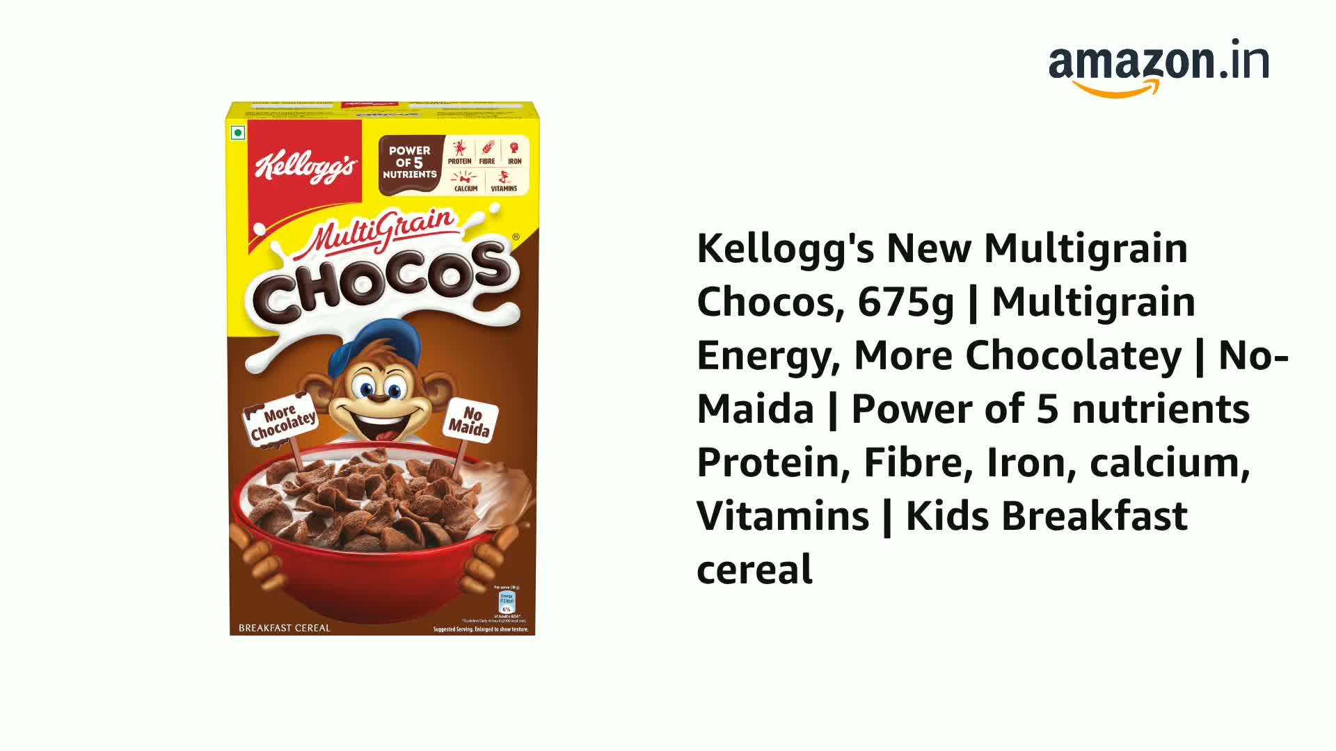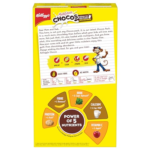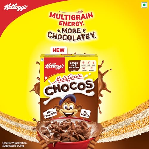 Kellogg's New Multigrain Chocos, 675g | Multigrain Energy, More Chocolatey | No-Maida | Power of 5 nutrients Protein, Fibre, Iron, calcium, Vitamins | Kids Breakfast cereal