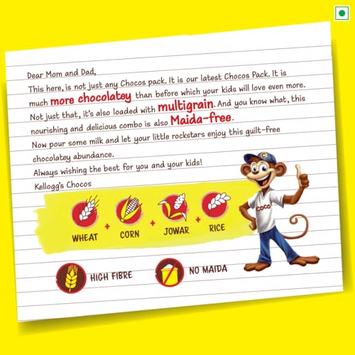 Kellogg's Chocos has the goodness of whole wheat. Each serving of 30g Kellogg's Chocos has Protein and Fibre equal to that of 1 wheat roti of 30g.