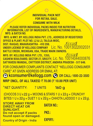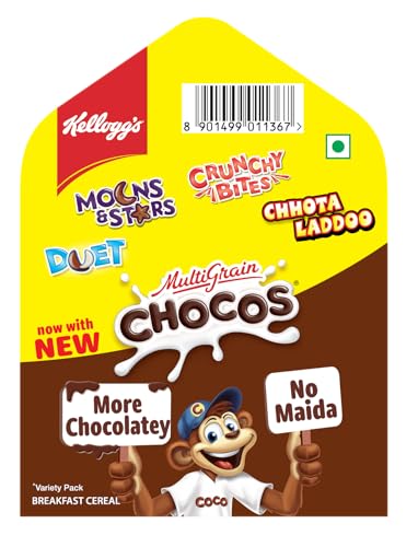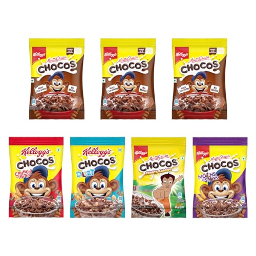 Kellogg's Chocos Variety Pack of 7, 140g with Multigrain | Source of Calcium, High in Protein, with 10 Essential Vitamins & Minerals, Source of Fibre | Breakfast Cereal for Kids