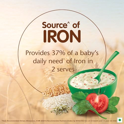 • MULTIGRAIN DAL VEG: This multigrain dal veg baby food is packed with the goodness of cereal milk & vegetables