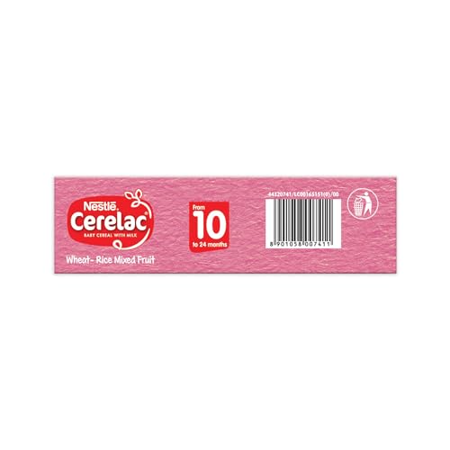 Nestle Cerelac Baby Cereal with Milk is a complementary baby food for infants from 10 to 24 months. While infants and children have higher requirements of nutrients than adults 2 serves of Cerelac Wheat - Rice Mixed Fruit Cereal provide 37% of a babydaily needof iron. It is also a source of 14 important nutrients including vitamins and minerals. Vitamin A C D and Zinc help support normal immune system function. This baby cereal is rich in protein and packed with the goodness of cereal milk and fruits. With 155 years of scientific expertise in infant nutrition Nestle develops infant nutrition products backed by evolving science and research. Innovation has been at the heart of Nestle since its beginning. Usage: Step 1: Wash and dry your hands before preparing baby's food. Make sure all utensils are throughly clean. Step 2: Boil clean drinking water for 5 minutes. Allow to cool until lukewarm. Measure the quantity of water as mentioned on the table-1 above and pour it into the babybowl. Step 3: Add the number of scoops of CERELAC as mentioned in the table 1. Step 4: Stir until the cereal is smooth and feed immediately using a clean spoon. Warning: Infant food should be used only on advice of a health worker as to the need for its use. Discard unused feed. Infant food is not the sole source of nourishment. Storage Instructions - After opening the pack the contents should immediately be transferred to an empty clean dry and airtight container. After each use replace lid tightly & store in a cool dry and hygenic place.