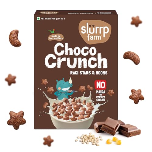 Slurrp Farm Choco Crunch Chocolate Cereal | No Maida, No Refined Sugar, No Added Colour | Ragi Stars and Moons | Healthy Breakfast for Kids | 400 g