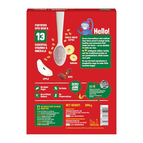 HomeBabyFeedingCereal & PorridgeSlurrp Farm No Added Sugar Instant Cereal | Wheat Apple & Date with Milk | No Preservatives | Mildly Sweetened with Date Powder | 200g