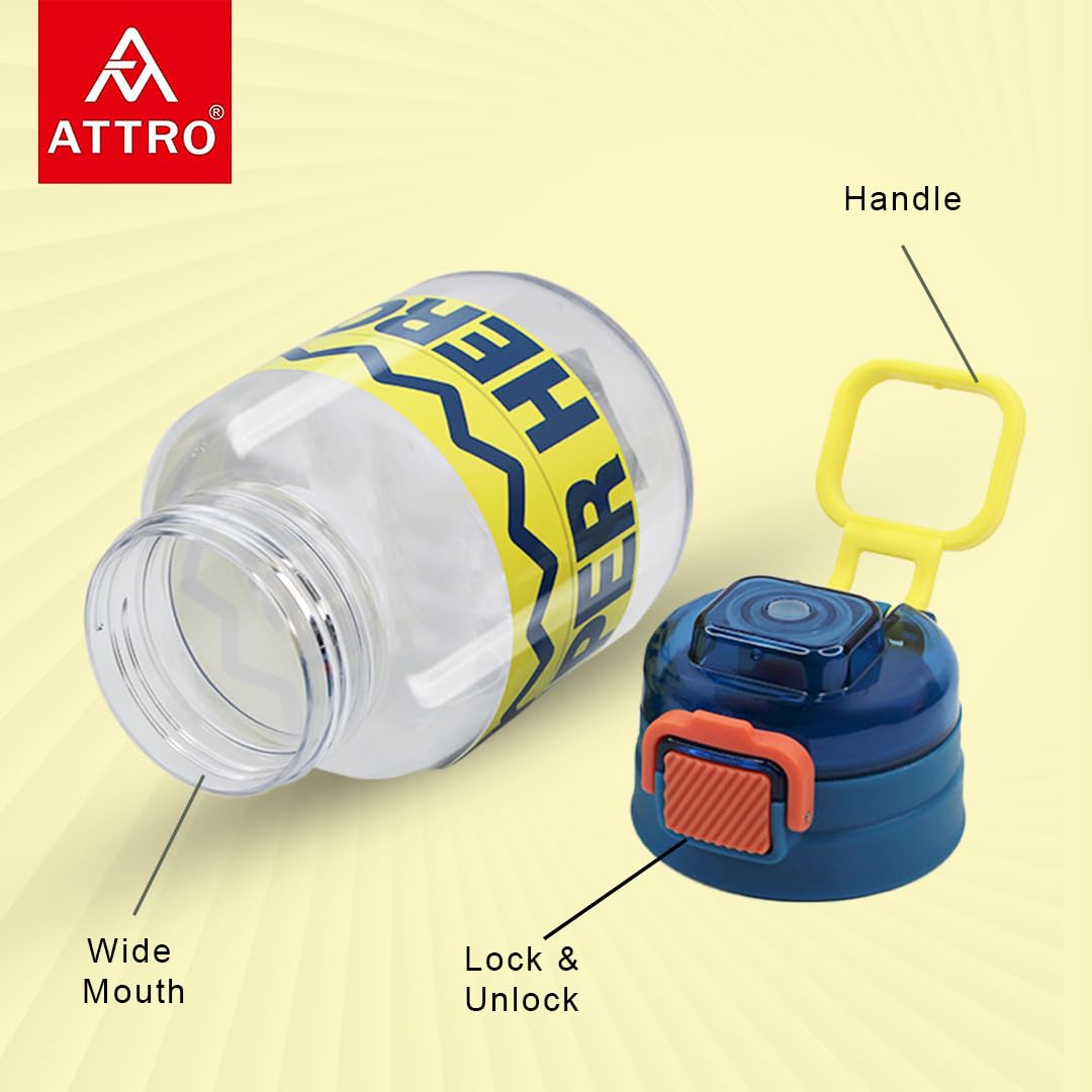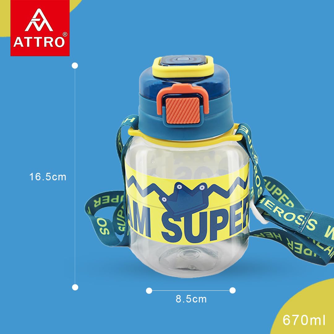 Attro Spike Kids 670ml water Bottle with Straw Lid & Nylon Strap BPA free Leak Proof Ideal for Toddlers - Dark Blue