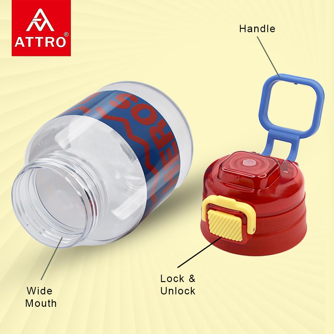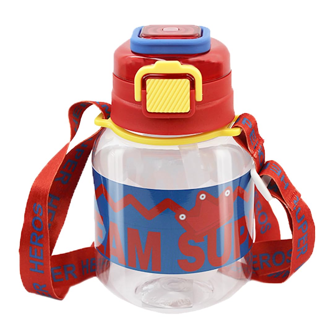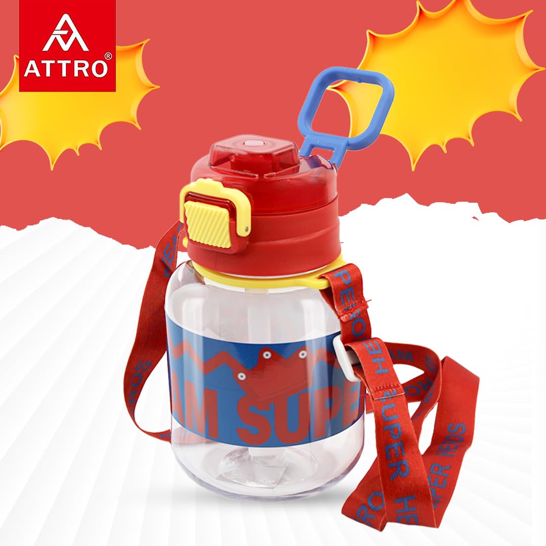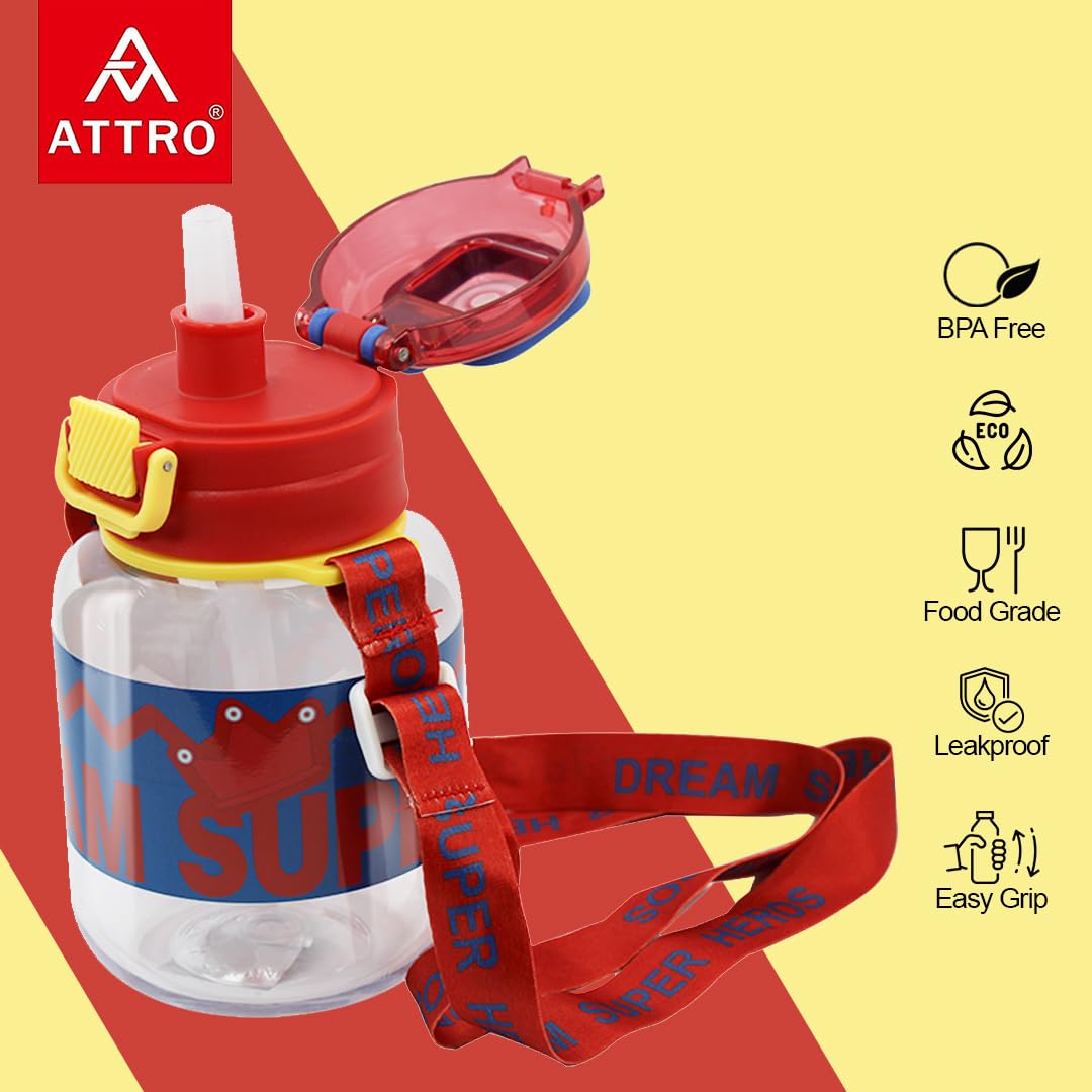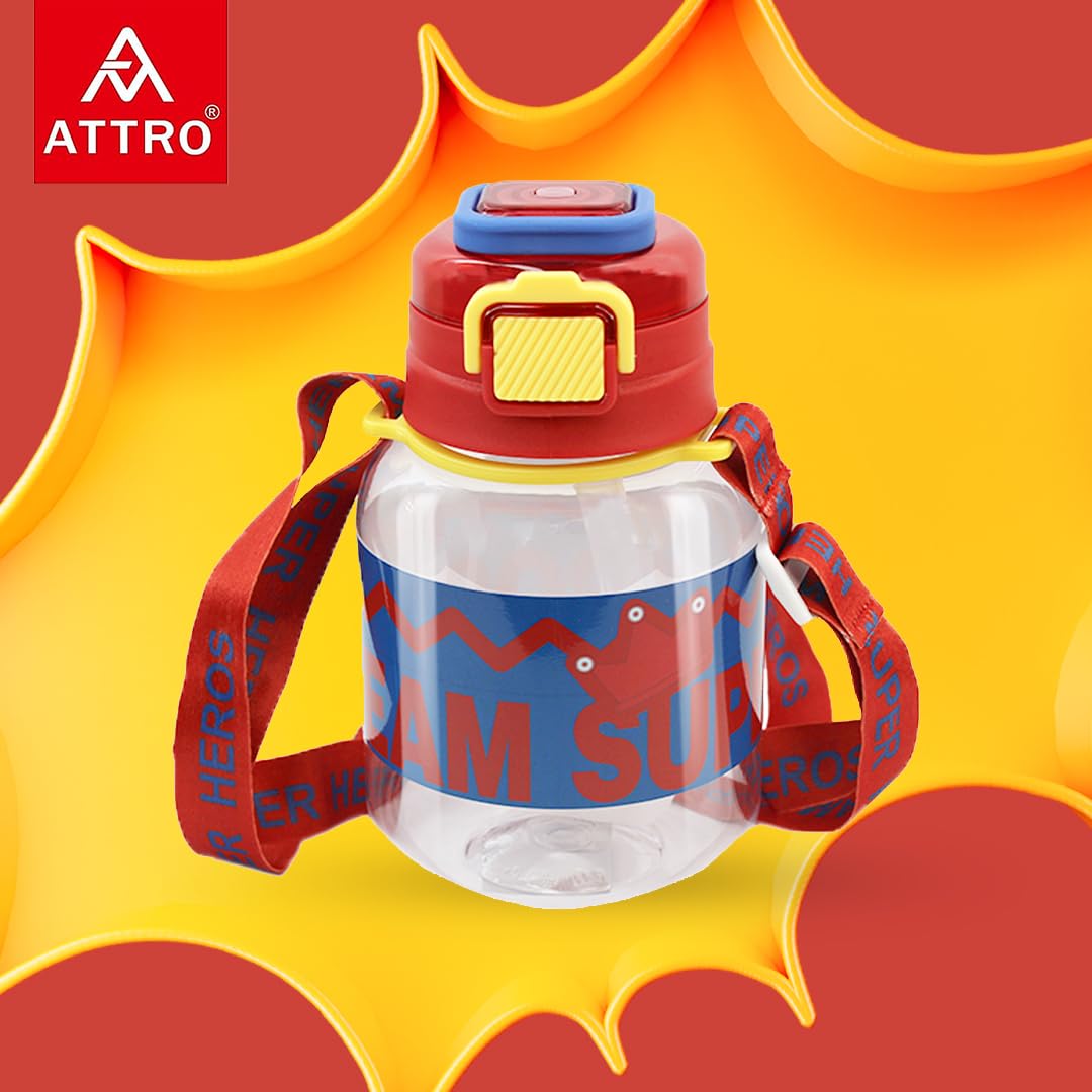 Attro Spike Kids 670ml Water Bottle with Straw Lid & Nylon Strap BPA Free Leak Proof Ideal for Toddlers - Red