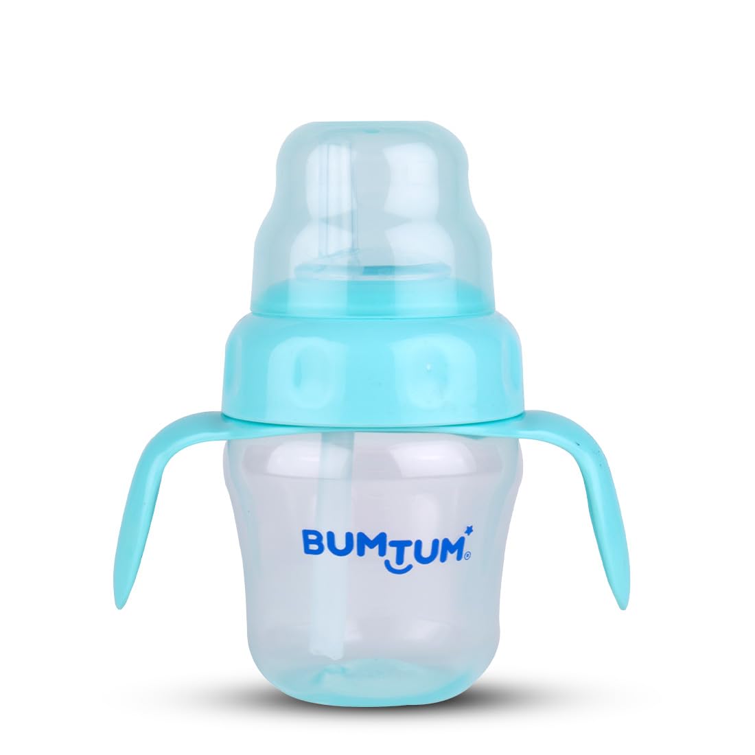 BUMTUM Baby Sipper with Silicon Spout and Straw Soft Silicone Spout and Straw Bpa Free 150ml - Blue