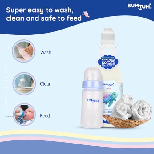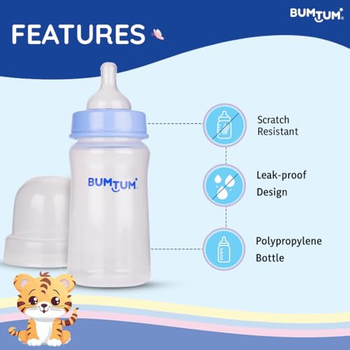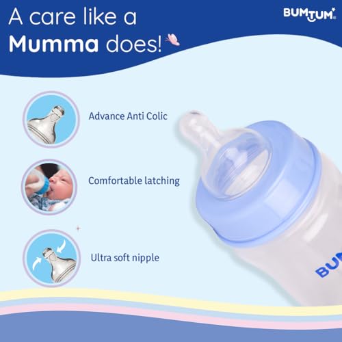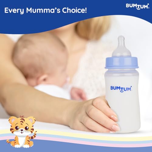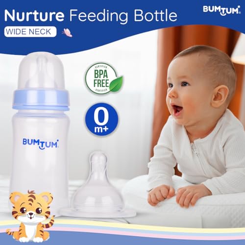 Bumtum Nurture Wide Neck Feeding Bottle Liquid Silicone Teat with Advanced Anti-Colic Valve - 250 Ml - (Pack of 1)