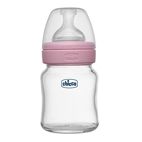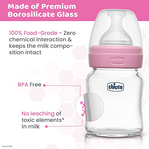 HomeBabyFeedingFeeding AccessoriesChicco Well-Being Glass Feeding Bottle for Babies (120ml, Slow Flow) | Premium Borosilicate Glass for High Durability | Elongated Teat for Correct Latch | Comes with Anti-Spill Cap | BPA Free (Pink)