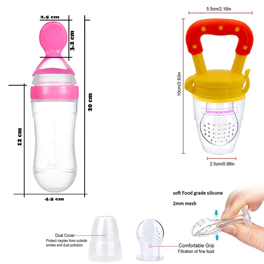 GOODMUNCHKINS Food Feeder & Fruit Feeding Nipple for Infants/Toddlers Food Grade Silicone Container 90ml and Nipple BPA Free Combo Pack of 2 Items