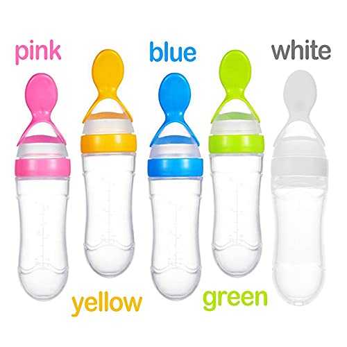 • Convenient way to feed your baby first pureed foods and cereals and help make feeding time more easier and less messy. Gently squeeze the Spoon Feeding Bottle until the desired amount of food collects on to the spoon to feed baby.