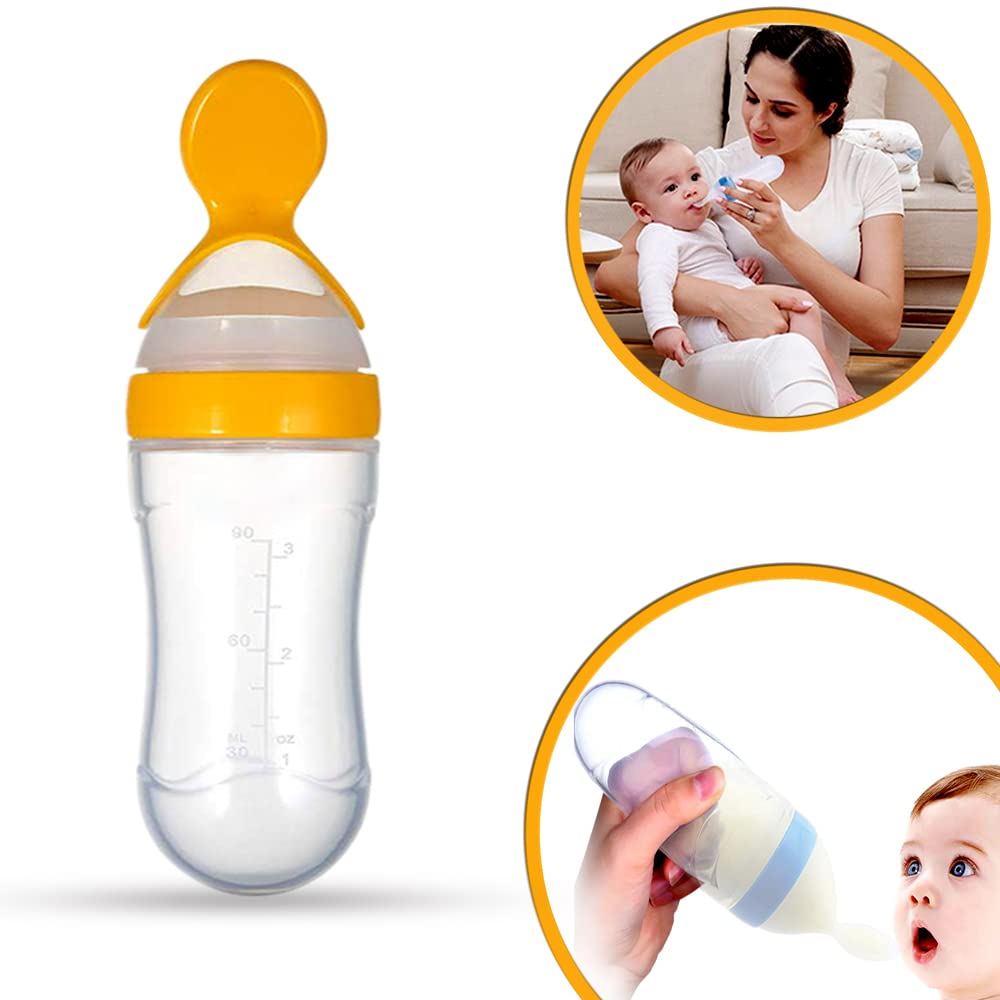 GOODMUNCHKINS Silicone Spoon Food Feeder for Toddlers Food Grade Silicone Bottle 90ml BPA Free (Yellow)