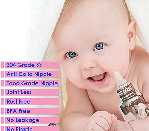 Goodmunchkins Stainless Steel Baby Feeding Bottle 304 Grade Steel Anti Colic Silicone Nipple Joint Less BPA Free with 2 Food Grade Silicone Nipples