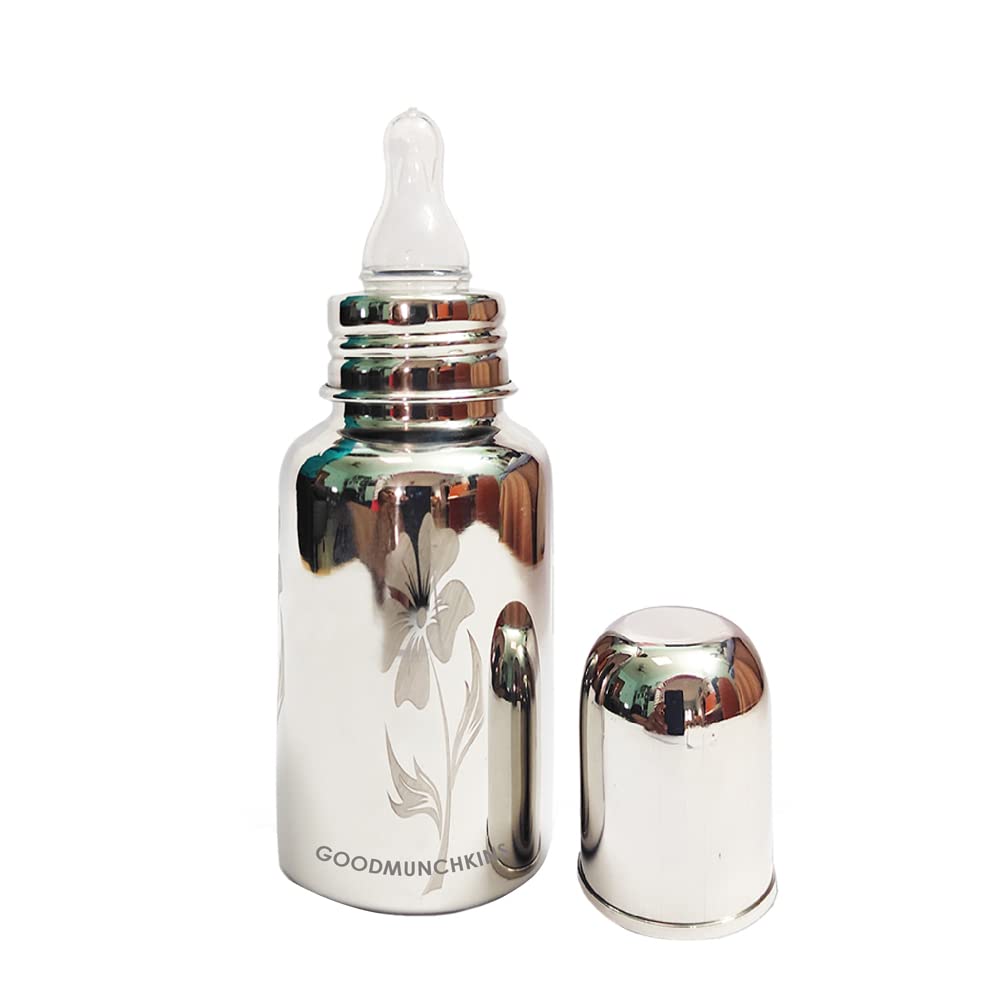 Goodmunchkins Stainless Steel Feeding Bottles opt for Newborn Baby/Infants/Toddlers. The size available 150220300ml Capacity. The Bottle is made of 304 Grade Steel without any welding Joints in the Bottle hence there is Rust Free Insides and Outside of the the Bottle considering Hygiene and Health of your Baby. The Bottle is made 100% No Leakage in the neck side There is more quality checks Before Dispatch the Bottle to the Customer. Mirror finishing Bottle we can store Milk/Water/Juice/Soup. Lightweight so baby can hold easily at the same time it very strong product. The Nipple is made of Food Grade Silicone. Extra soft medical-grade silicone spout provides an easy transition from bottle-feeding. Smooth Design with no sharp curves or edges keeping in mind Easy and Safe cleaning of the bottle. Easy to Carry Easy to Handle and Easy to Clean. No smell. No mess. The bottle is of sleek design and is very convenient while handling. Reduces sterilization work. Only Silicon Nipple needs to be sterilized. The bottle can be washed with Soap and Water Made in India.