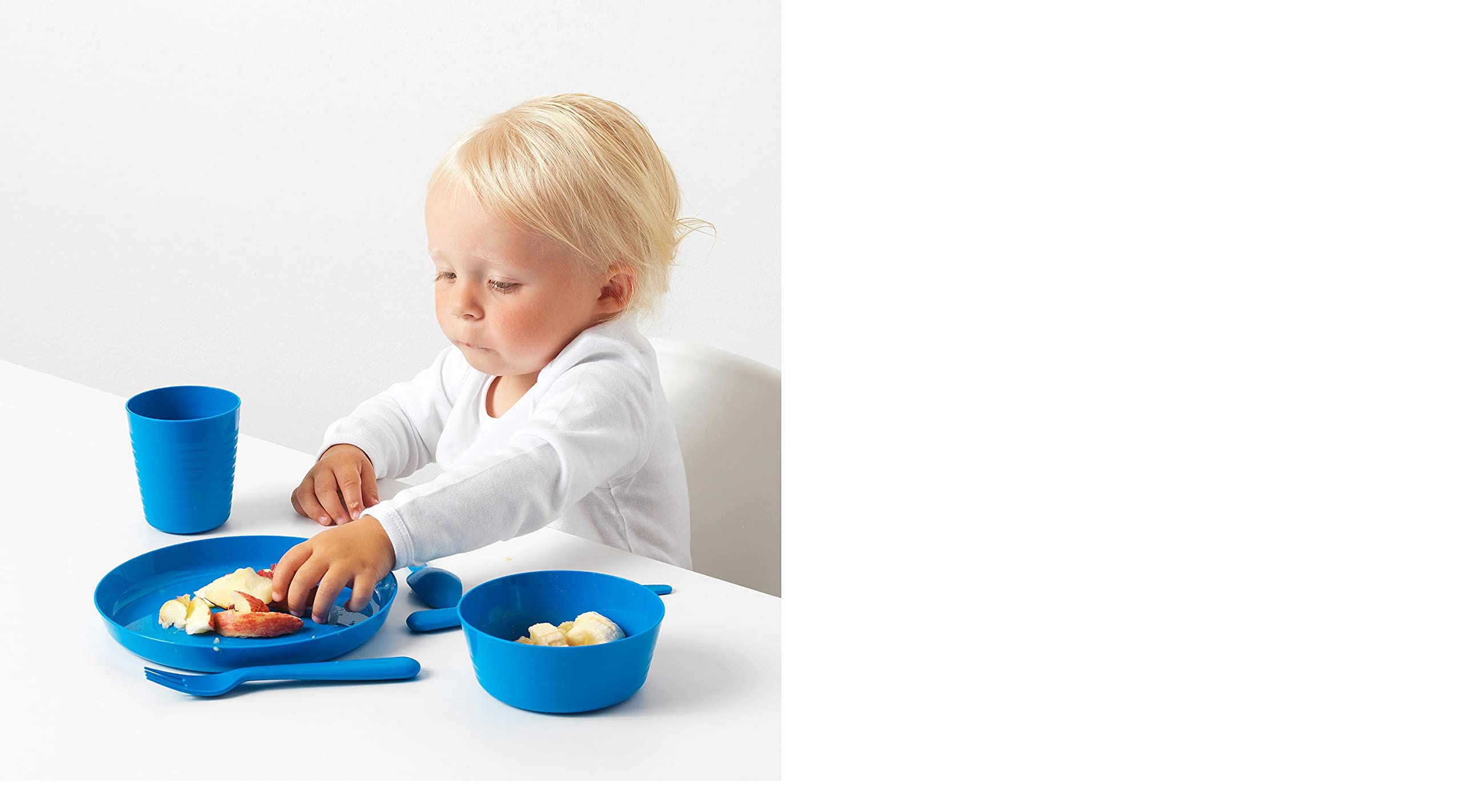 The plate has a high edge to make it easier for the child to keep the food inside the plate.