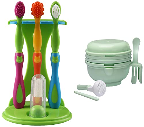 LuvLap 9 in 1 Baby Food Masher Mill (Light Green) & 4 Stage Baby Oral Care Set