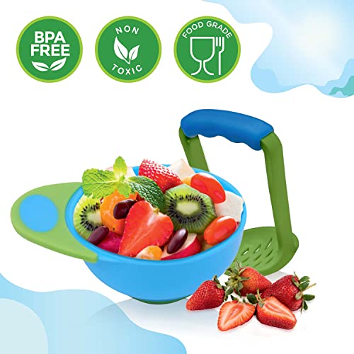 LuvLap Baby Food Grinding Cum Feeding Bowl Portable Baby Food Masher & Serving Bowl for Baby weaning Food Preparation (Green & Blue)LuvLap LuvLap Baby Food Grinding cum Feeding Bowl is Made of BPA Free PP material. It is nontoxic odor free and tasteless. It can be used to grind fruits & vegetables meat and fishes into smooth paste and pureed food. It is easy to clean. Just rinse it with running water & let it dryLuvLap Silicone Food/Fruit Nibbler with Extra Mesh Soft Pacifier/Feeder Teether for Infant Baby Infant Elegant Blue BPA FreeFruit nibbler and teething toy to provide gentle relief to gums. Serves dual purpose of feeding fruit and vegetables to babies and can also be used as a teether. Can be filled with chilled fruits/vegetables to provide added relief. Made with bpa free food grade plastic and soft silicone it comes in attractive handle designs to EN gage the baby and is easy to hold and nibble upon.