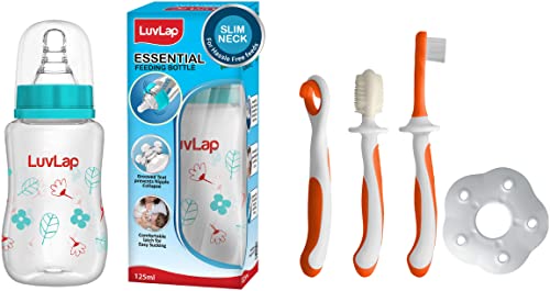 LuvLap Baby Training Toothbrush Set with Anti Choking Shield Teeth Tongue Cleaner Baby Oral Hygiene 3 pcs (White/Orange)Lifes little stories bloom with coming of the little one in your life. It completes your life with many joys of parenthood. For baby its the next best thing to being in your arms. Entertain your little one and give him or her a personal resting place. Luvlaps high chairs cots walkers and other indoor products will have the whole household floored by babys happy smiles and chuckles. At Luvlap we endeavour to weave the little stories into our products with an emphasis on child safety and enrichment of features. So that your little one gets the comfort thats next only to the warmth of your lap. Conceived with care and made using the latest marvels of science all Luvlap products undergo multiple quality checks before they are dispatched to the stores. The products are available at all leading baby gear and online stores and conform to the european standards.Luvlap Anti-Colic Slim Wild Flowers BPA-free Regular Neck Baby Feeding Bottle 125ml GreenLuvLap Essential Feeding Bottles are ergonomically designed to be easily held while feeding the baby. All LuvLap bottles are 100% BPA free and fully sterilizable. The teats are 100% Liquid Silicone and have an anti-colic valve that vents air into the bottle preventing any air from entering the baby?s tummy. The teat has spiral grooves at the tip which encourage peristaltic suckling and help the baby get a comfortable latch. The grooved teats and superior silicone quality ensure no nipple collapse helping in an uninterrupted feed. With the LuvLap Essential Feeding Bottles at your side your baby?s feed will always be a comfortable one