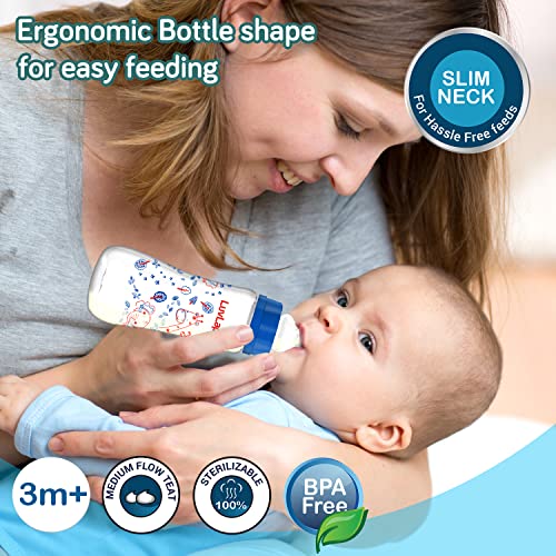LuvLap Bunny Food & fruit nibblerFruit nibbler and teething toy to provide gentle relief to gums. Serves dual purpose of feeding fruit and vegetables to babies and can also be used as a teether. Can be filled with chilled fruits/vegetables to provide added relief. Made with bpa free food grade plastic and soft silicone it comes in attractive handle designs to EN gage the baby and is easy to hold and nibble upon.Luvlap Anti-Colic Slim Regular BPA-free Neck Essential Baby Feeding Bottle 250ml BlueLuvLap Essential Feeding Bottles are ergonomically designed to be easily held while feeding the baby. All LuvLap bottles are 100% BPA free and fully sterilizable. The teats are 100% Liquid Silicone and have an anti-colic valve that vents air into the bottle preventing any air from entering the baby?s tummy. The teat has spiral grooves at the tip which encourage peristaltic suckling and help the baby get a comfortable latch. The grooved teats and superior silicone quality ensure no nipple collapse helping in an uninterrupted feed. With the LuvLap Essential Feeding Bottles at your side your baby?s feed will always be a comfortable one