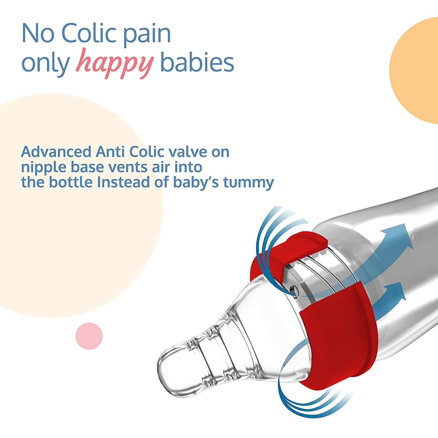 LuvLap Essential Slim Neck Glass Feeding BottleAbout product:Made of non toxic glass. International quality, high on safety and durability. Ergonomic bottle shape made of 100percent borosilicate glassMulti functional glass bottle. 100percent sterilizable and microwave safe. Can be used for feeding babies with milk, water or formulaZero leakage, easy to clean and sterilize. Reduces the chance of bacterial growth and thus doesnt stink. Residual milk can easily be cleaned with warm water100percent PP feeding bottle neck, non toxic and BPA FreeAdvanced anti-colic valve on nipple base, vents air into the bottle instead of baby's tummyLegal Disclaimer: Product images are for illustrative purposes only. Ima