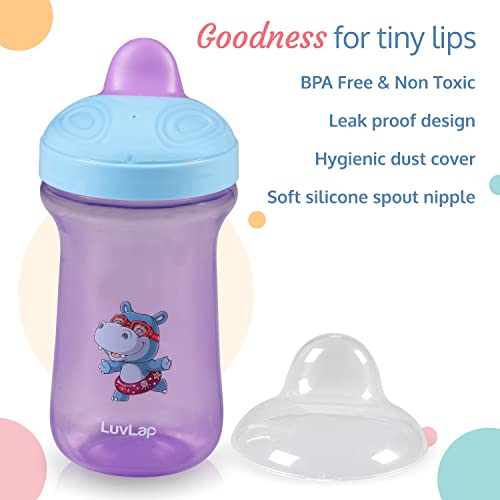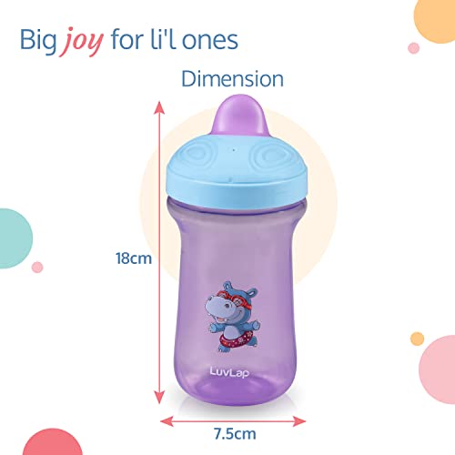 LuvLap Happy Hippo Hard Spout Sipper for Infant/Toddler, 300ml, Anti-Spill Sippy Cup with Easy Sip Bite Resistant Hard Spout, Ergonomic Shape, BPA Free, 6m+ (Pink, Polypropylene (PP))
