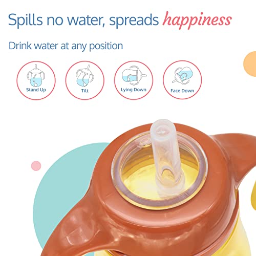 Brought this for my 1 year girl, very easy to sip.Water don't spill even if baby turn it upside down completely for long time.