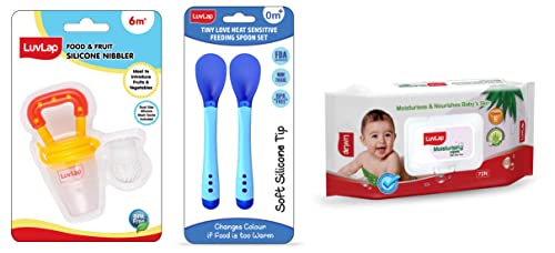LuvLap Silicone Food/Fruit Nibbler with Extra Mesh Soft Pacifier/Feeder Teether for Infant Baby Infant Joystar Yellow BPA FreeFruit nibbler and teething toy to provide gentle relief to gums. Serves dual purpose of feeding fruit and vegetables to babies and can also be used as a teether. Can be filled with chilled fruits/vegetables to provide added relief. Made with bpa free food grade plastic and soft silicone it comes in attractive handle designs to EN gage the baby and is easy to hold and nibble upon.LuvLap Baby Silicone Finger ToothBrush with case for Easy Cleaning Massaging and Soothing Gums Oral HygieneMade from Non Toxic Liquid Silicone. Gently cleans your baby's teeth and gum. Provides relief to the child's tender gums during teething. Includes case for storage and to maintain hygiene.