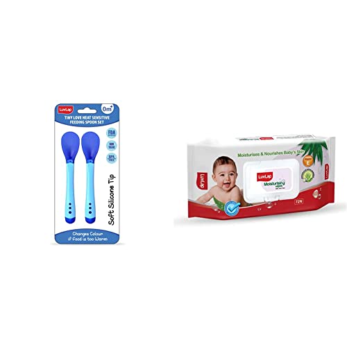 LuvLap Tiny Love Heat Sensitive Baby Feeding Spoons Set Food Grade PP Kids & Baby Spoon with Soft Silicone Tip Color changing BPA Free FDA Apporved 2 pcs BlueLifeÂs little stories bloom with coming of the little one in your life. It completes your life with many joys of parenthood. For baby itÂs the next best thing to being in your arms. Entertain your little one and give him or her a personal resting place. LuvlapÂs high chairs cots walkers and other indoor products will have the whole household floored by babyÂs happy smiles and chuckles. At Luvlap we endeavour to weave the little stories into our products with an emphasis on child safety and enrichment of features. So that your little one gets the comfort thatÂs next only to the warmth of your lap. Conceived with care and made using the latest marvels of science all Luvlap products undergo multiple quality checks before they are dispatched to the stores. The products are available at all leading baby gear and online stores and conform to the european standards.LuvLap Paraben Free wipes for baby skin with Aloe Vera Fragrance Free pH Balanced Dermatologically Safe Baby Wipes Rich in Vitamin E & chamomile extract 72 Wipes With Lid PackLuvLap Moisturizing Baby Wipes with aloe vera are the perfect wipes for your baby's delicate skin. Enriched with the goodness of Aloe Vera & Chamomile they are completely free of alcohol and harmful parabens. The pack also comes with a lid seal to ensure the quality remains consistent over time. After all your baby's safety is our prime concern.