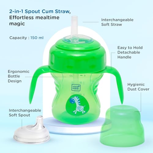 Mee Mee Baby Trainer Sippy Cup | Soft Spout, Leakproof Sipper for Toddlers | Dual Handle for Easy Grip | Non -Toxic, Lightweight & BPA Free, Green (150 Ml)