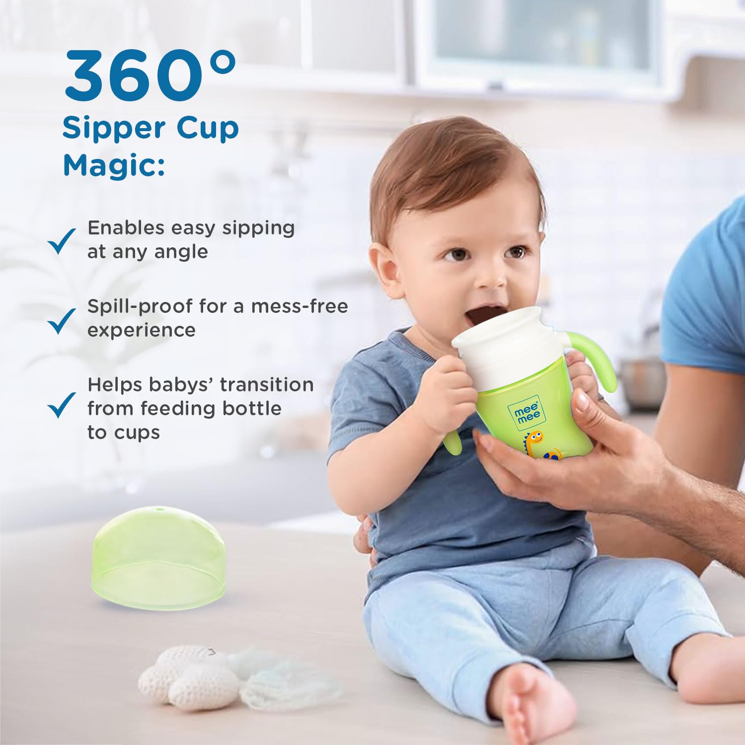 HomeBabyFeedingFeeding AccessoriesMee Mee 2 in 1 Spout and Straw Sipper Cup (Green)with Soft Spout & Straw Anti-Leak Detachable Handle for Babies/Toddlers/Kids(Light Green)