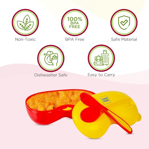 Mee Mee Air-Tight Feeding Bowl with Spoon,Microwave Friendly and Easy to Use & Carry (Red)