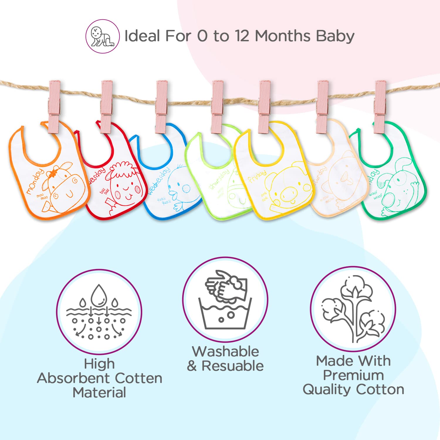 Mee Mee Baby Cotton Apron/Feeding Bibs Washable|Multi Print|Waterproof Baby Bib Set for 0-3 6-12 MonthsNew Born 1-2 Years (Pack of 7 Multicolor)