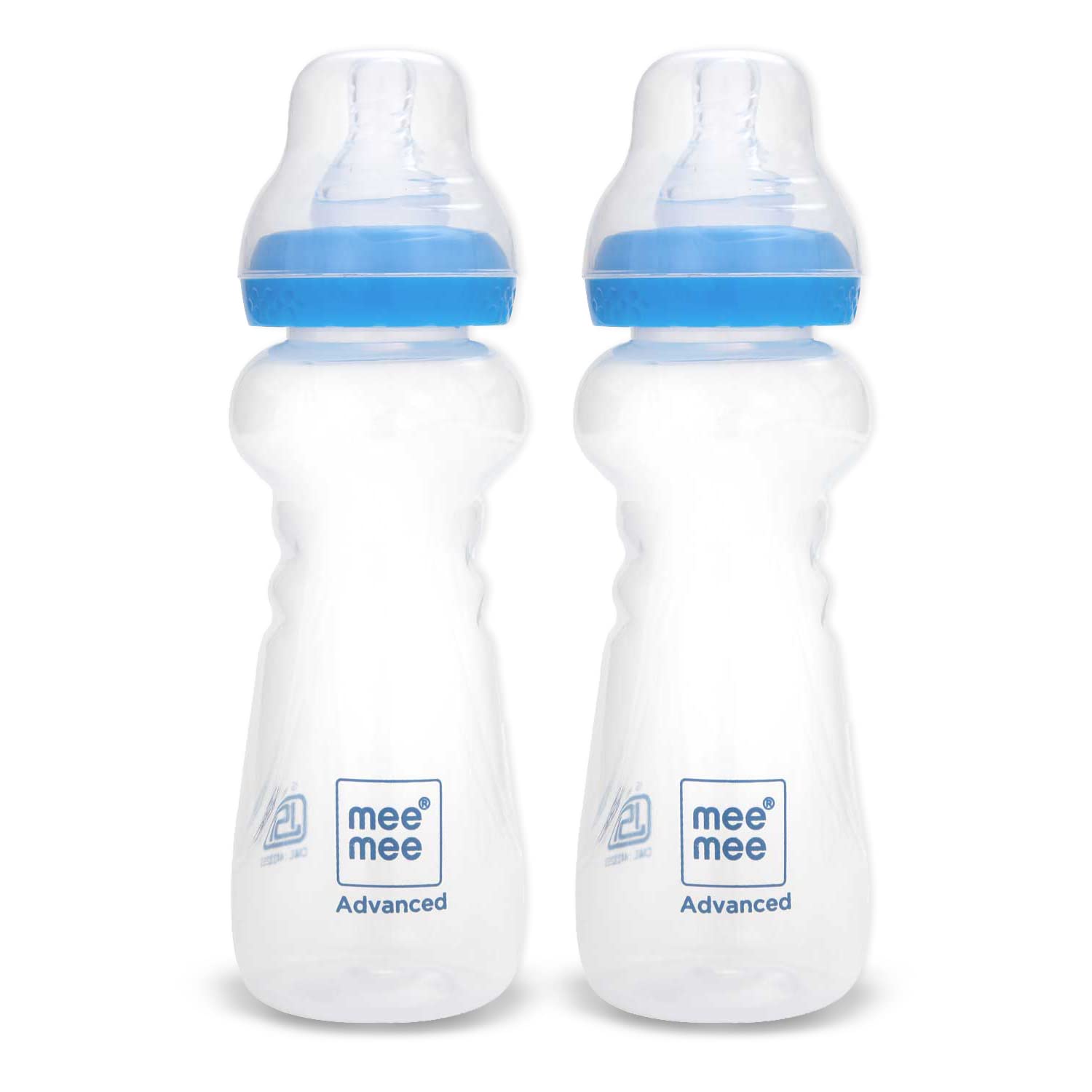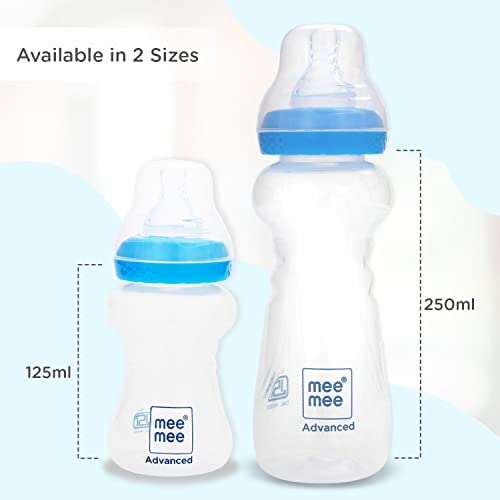 HomeBabyFeedingFeeding AccessoriesMee Mee Baby Feeding Bottle 250ml |BPA-Free Baby Milk Bottle with Eazy Flo Technology, Anti-Colic Valve, Non Toxic and Easy to Hold Grooved Design for New Born/Infants/Toddler Upto 3 Years (Blue, Pack of 2)