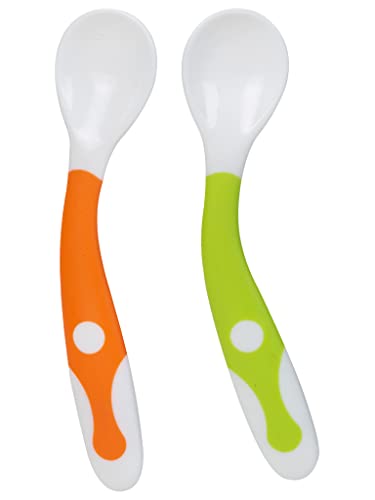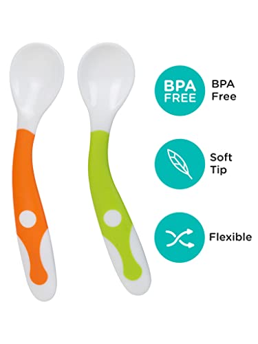 Mee Mee Baby Spoon | Easy Feeding Baby Spoon | BPA Free | Premium Stylish Spoon Set | Useful for 1+ Months Baby/Kids (Flexi-Pack 2 - Green & Orange)