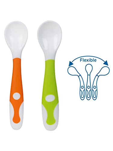 Mee Mee Baby Spoon | Easy Feeding Baby Spoon | BPA Free | Premium Stylish Spoon Set | Useful for 1+ Months Baby/Kids (Flexi-Pack 2 - Green & Orange)