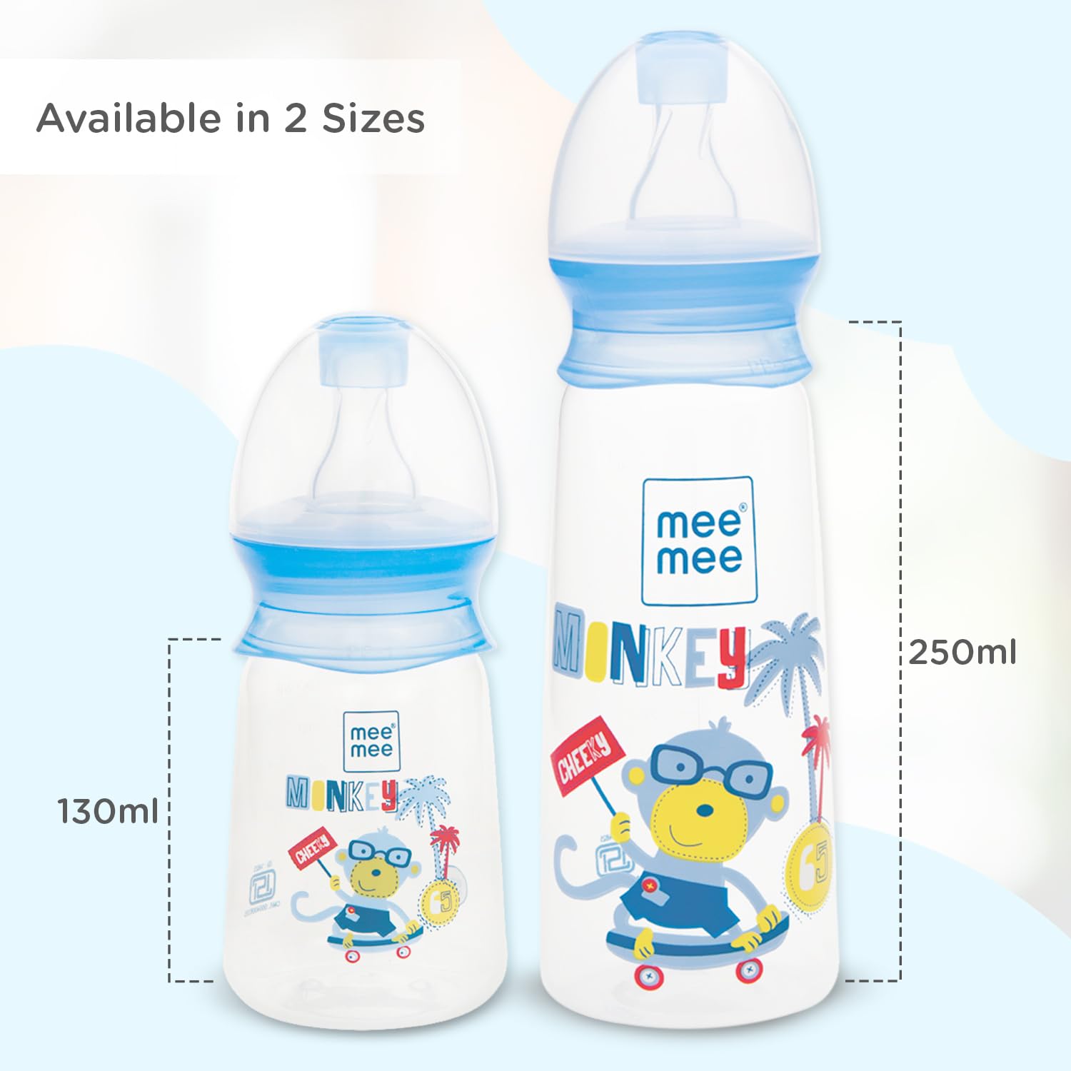 Mee Mee BPA-Free Baby Feeding Bottle Eazy Flo Technology Anti-Colic Valve 0-3 Years (Blue 250 ML (Pack of 2))