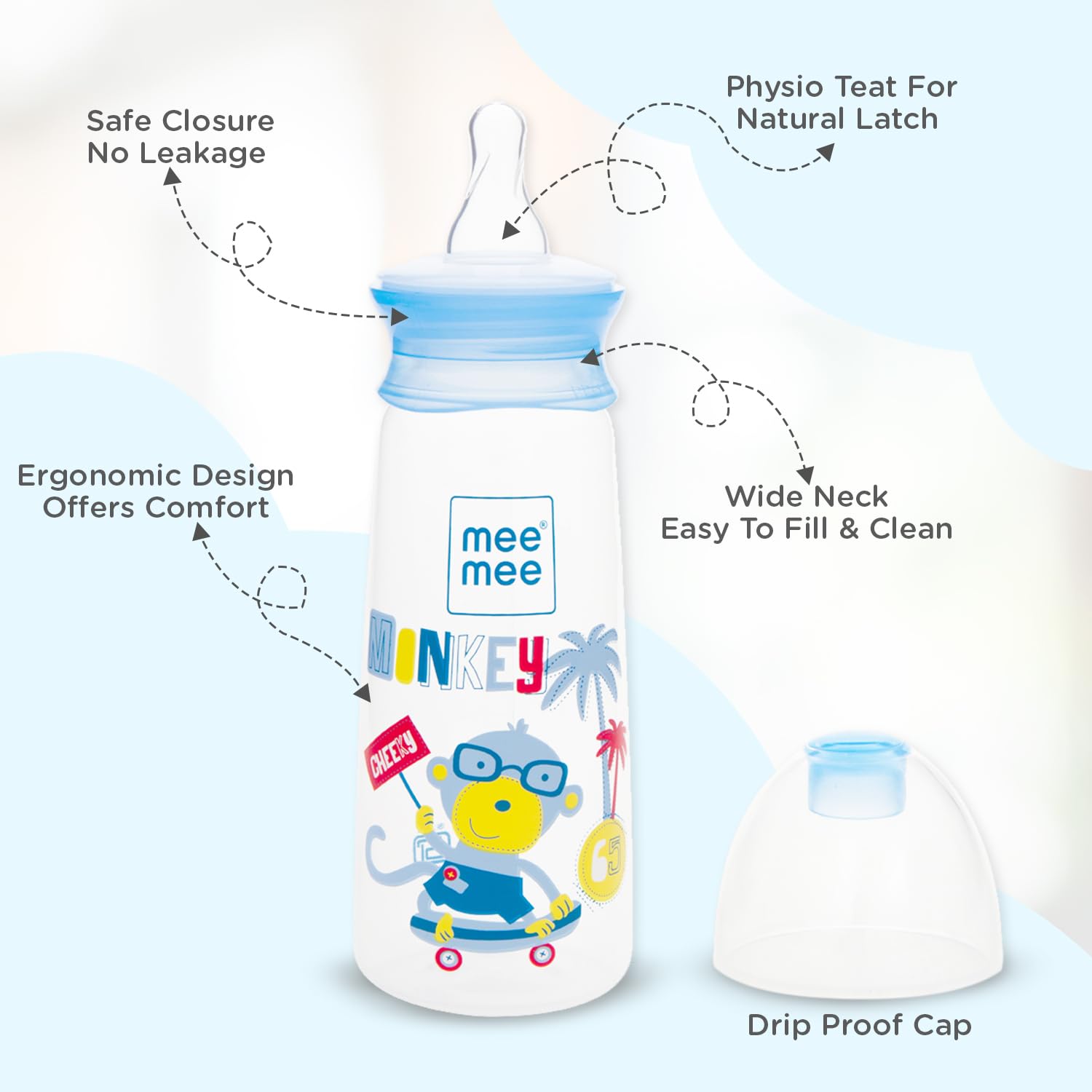 Mee Mee Baby Feeding Bottle is a BPA-free milk bottle designed for newborns infants and toddlers up to 3 years old. Its Eazy Flo Technology and anti-colic valve help prevent gas and colic ensuring a comfortable feeding experience. The ergonomic and non-toxic design provides a secure grip for tiny hands. This bottle's innovative features make it an excellent choice for parents seeking a safe and convenient way to feed their little ones. With a capacity suitable for growing babies this durable bottle is a must-have for every nursery.