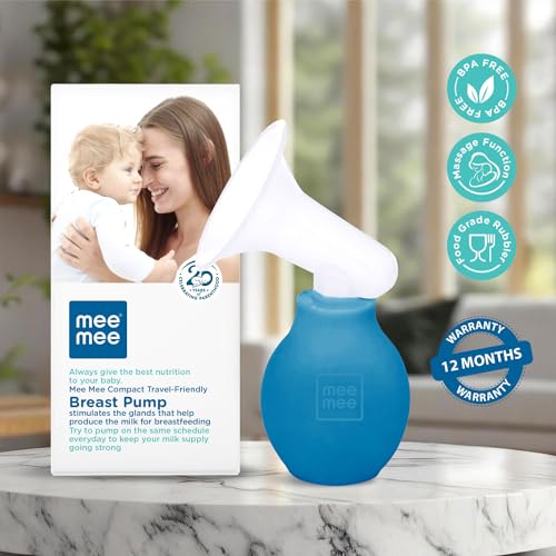 Mee Mee Travel-Friendly Manual Breast Pump for mothers - BPA-Free Comfort for Breastfeeding Moms (Blue)