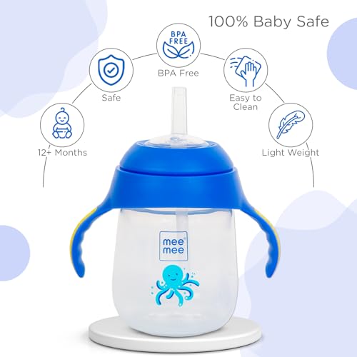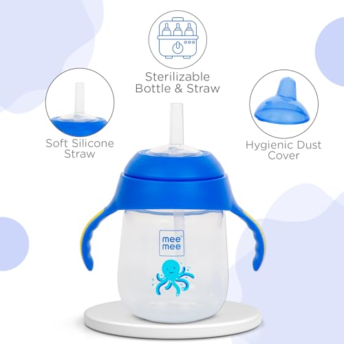 Mee Mee Twin Handle Straw Sipper Cup (Blue, Plastic)