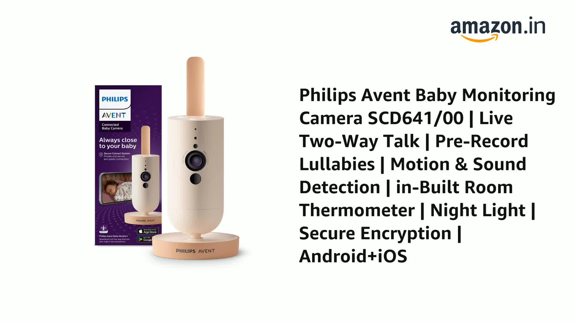 AVENT Philips Baby Monitoring Camera SCD641/00 | Live Two-Way Talk | Pre-Record Lullabies | Motion & Sound Detection | in-Built Room Thermometer | Night Light | Secure Encryption | Android+iOS