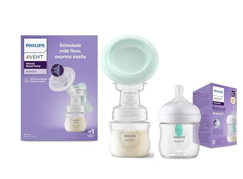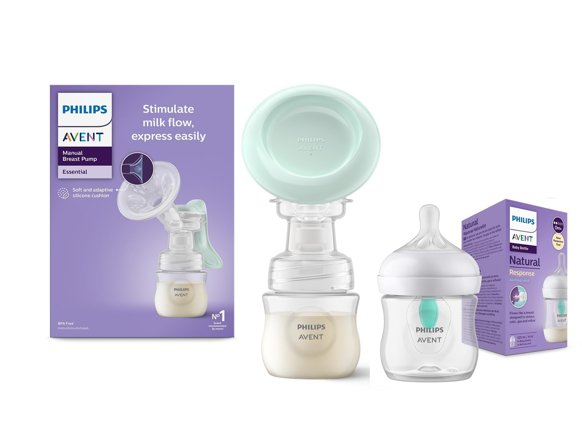 Philips Avent Essential Manual Breast pump | Easy Silicone massage cushion & Ergonomic handle, Soft & Gentle, BPA Free + 125ml Natural Bottle With Airvent Combo (SCF417/11 + SCY670/01) BY Fratelli